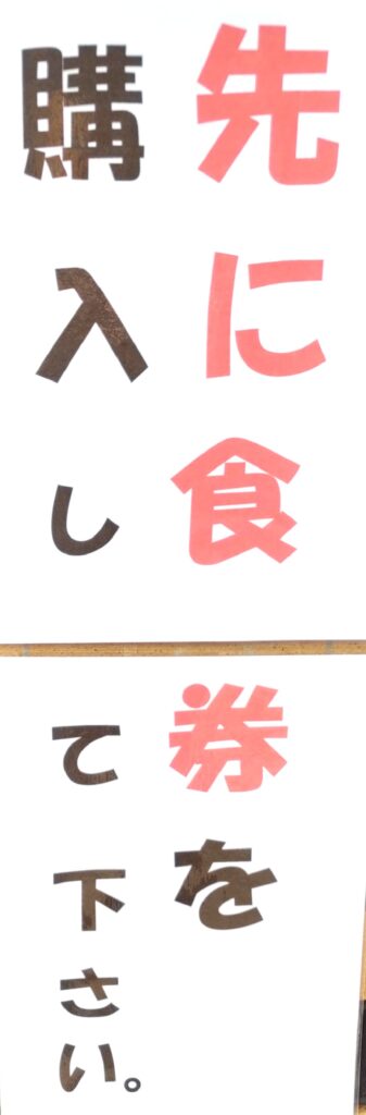 券売機はお店の外にあります。混雑時は外壁に一列で並ぶルールになっています。