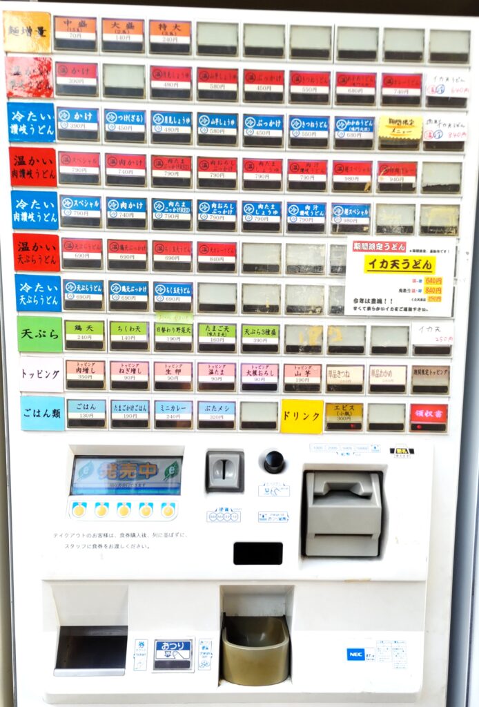 甚三うどんは食券制です。お店に着いたら、まず券売機で食券を購入しましょう。