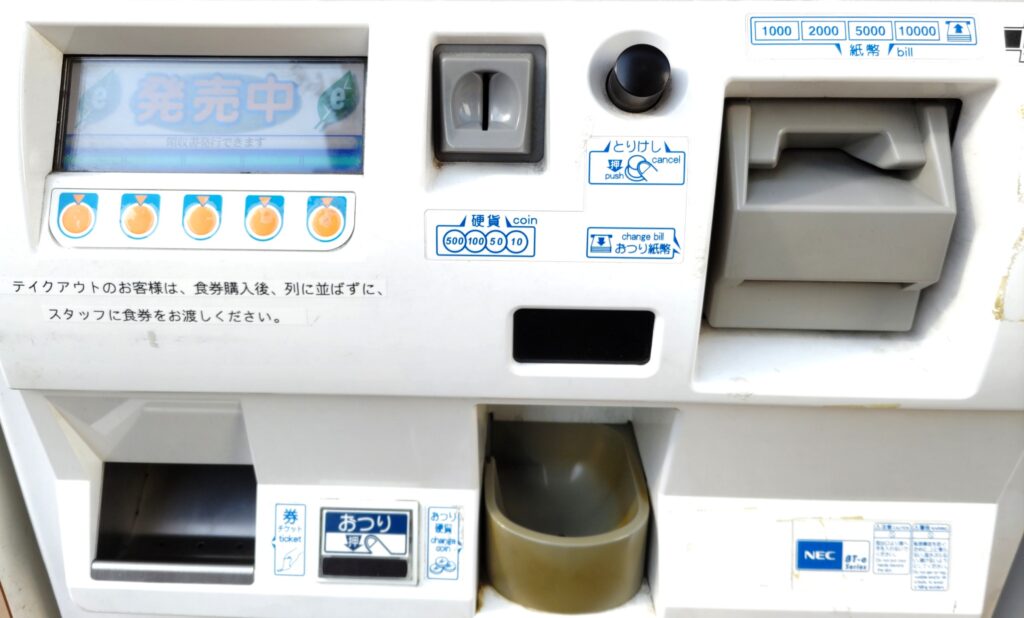 A: いいえ、現金のみです。券売機で食券を購入するスタイルで、1,000円札〜10,000円札に対応しています。