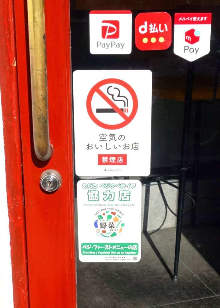 完全禁煙。足立区の「空気のおいしいお店」認定店
